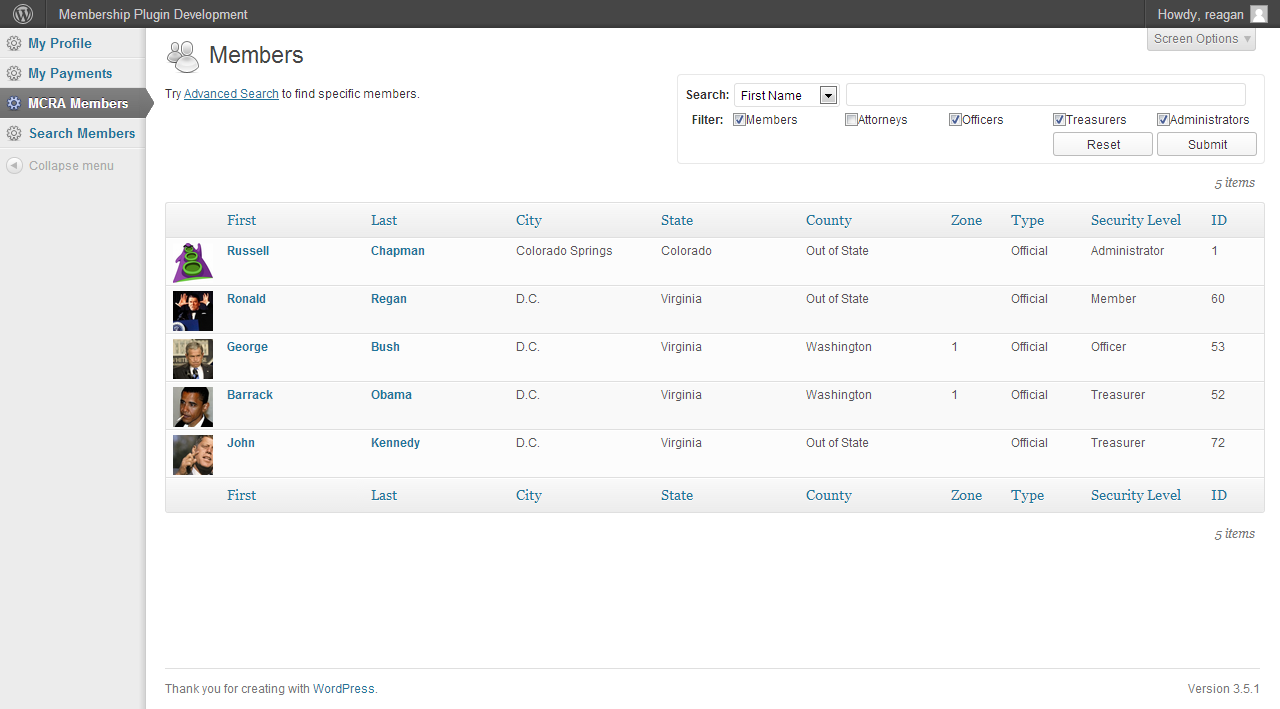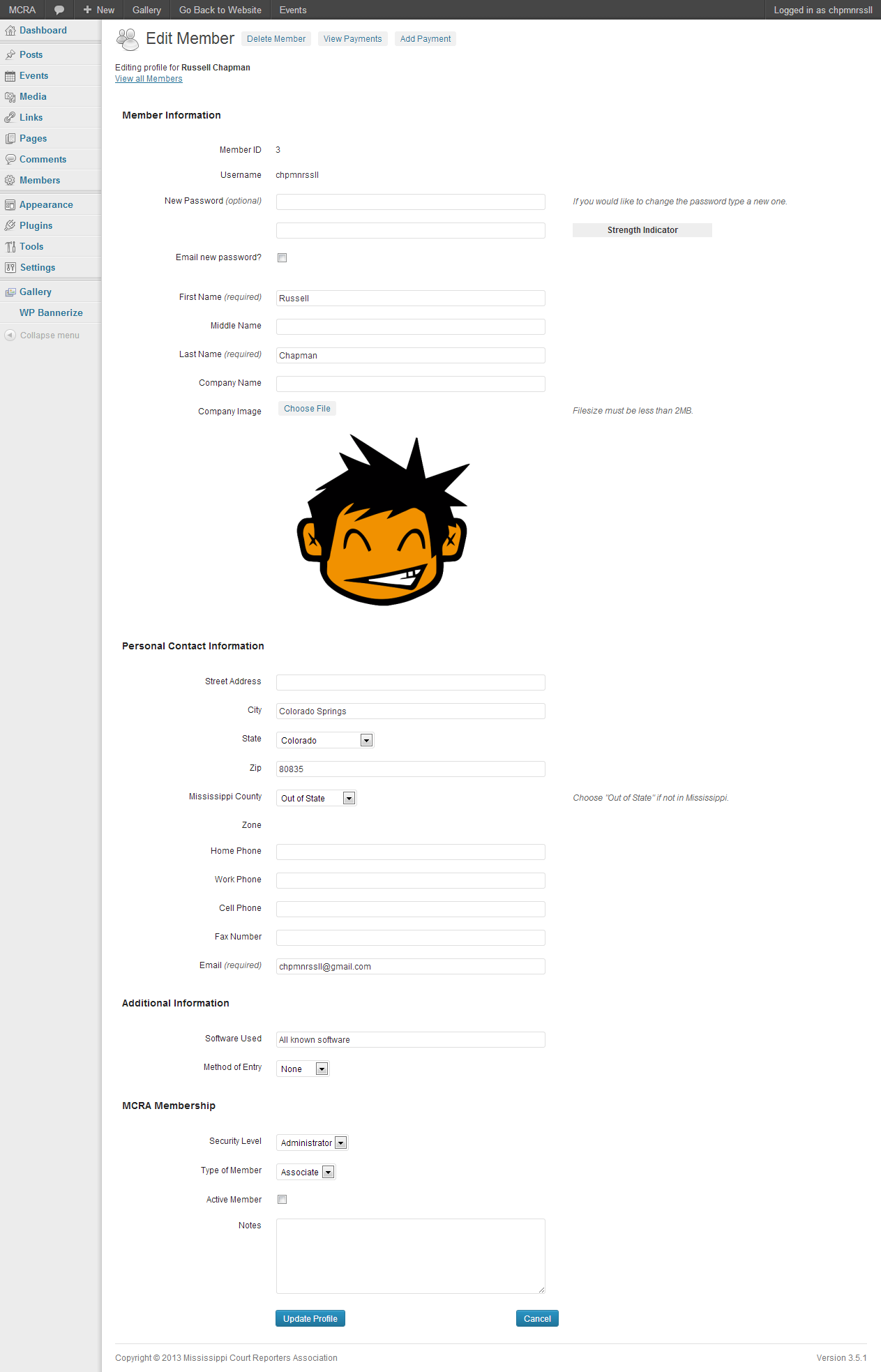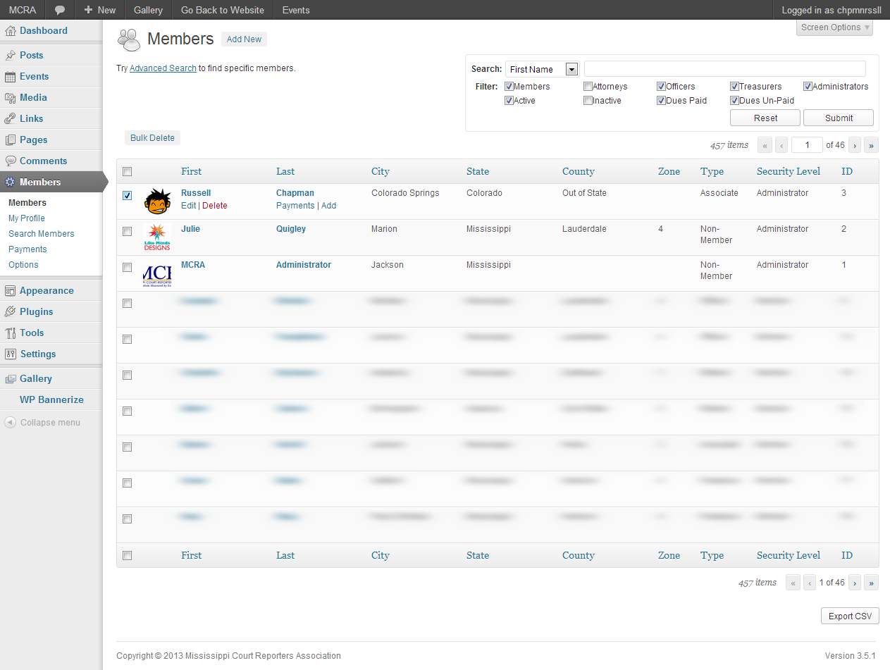 Custom built wordpress membership directory plug-in replacement for the default user system. Member accounts, profile management, public member directory, multiple user level restrictions, customized profile with AJAX image upload, uses wpdb and wp_list_table for default WordPress feel, searchable/filterable member listings, and payment/fees tracking.